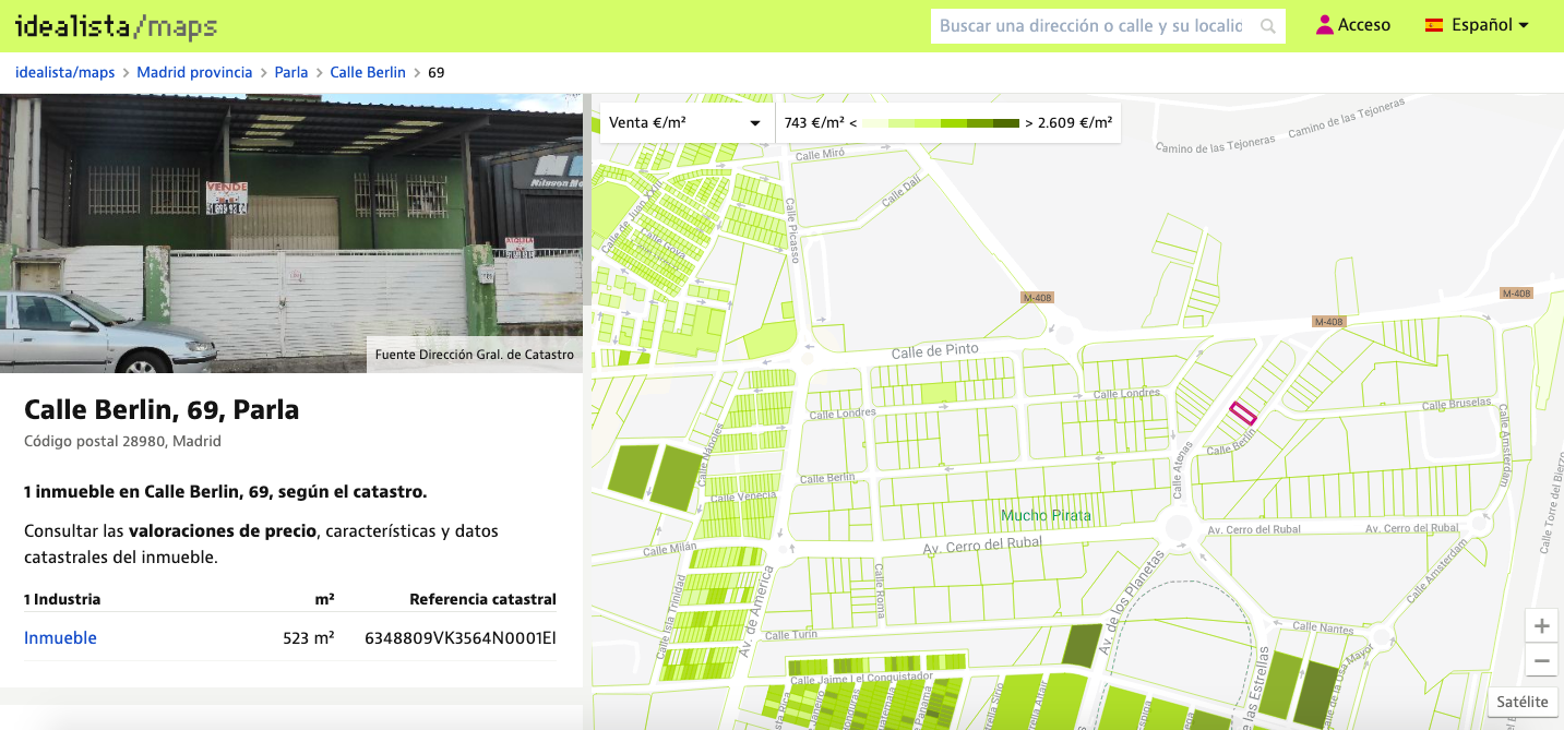 Este lunes 25 de enero de 2021 se ha declarado un incendio en un taller mecánico ubicado en la calle Berlín número 69 de Parla. El local ha ardido en su totalidad y han quedado calcinados los tres coches que había en un interior. El local estaba puesto a la venta en Idealista.