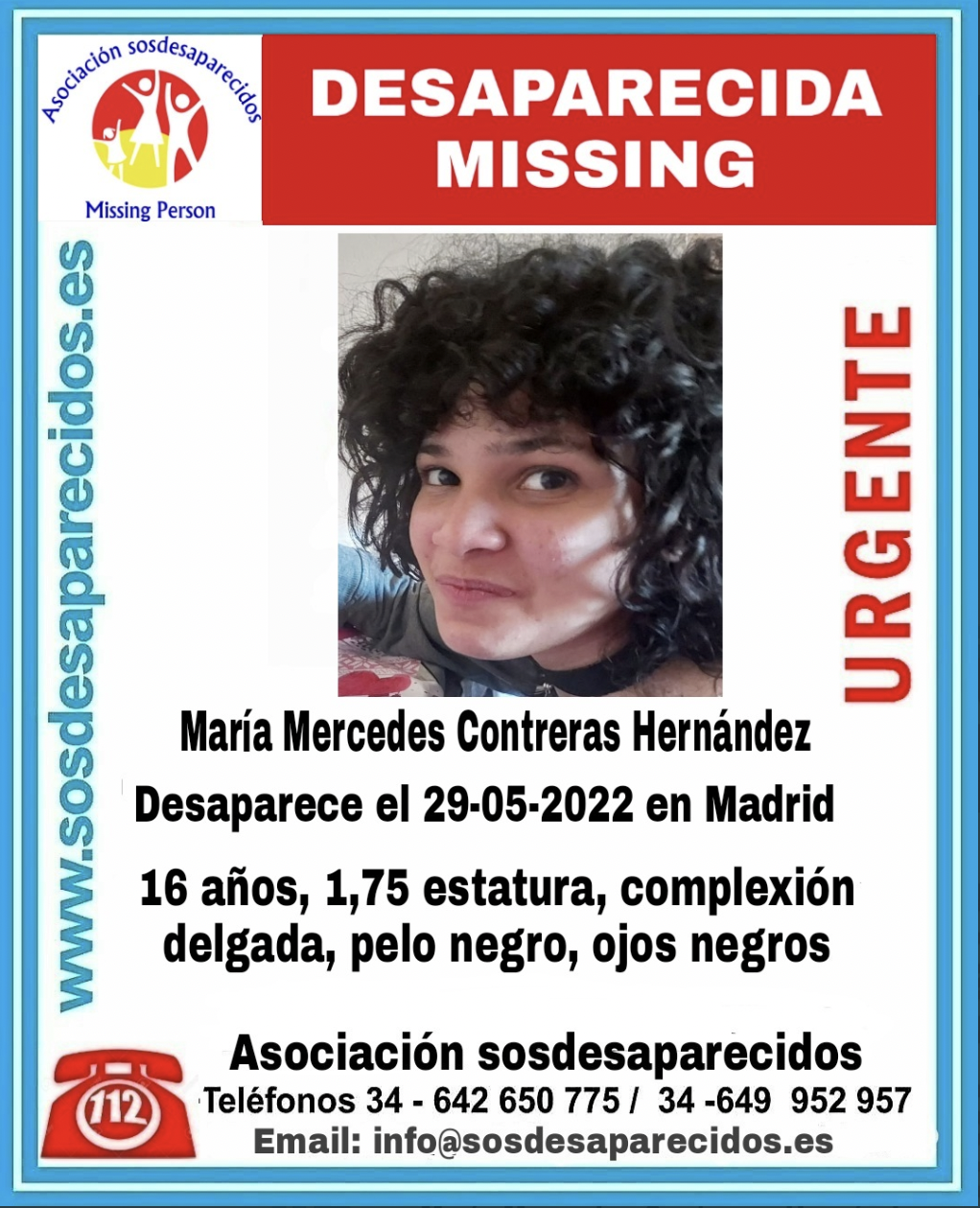 El domingo 29 de mayo de 2022 desapareció en Madrid una adolescente de 16 años. La Guardia Civil pide hoy viernes 3 de junio ayuda para localizarla.
