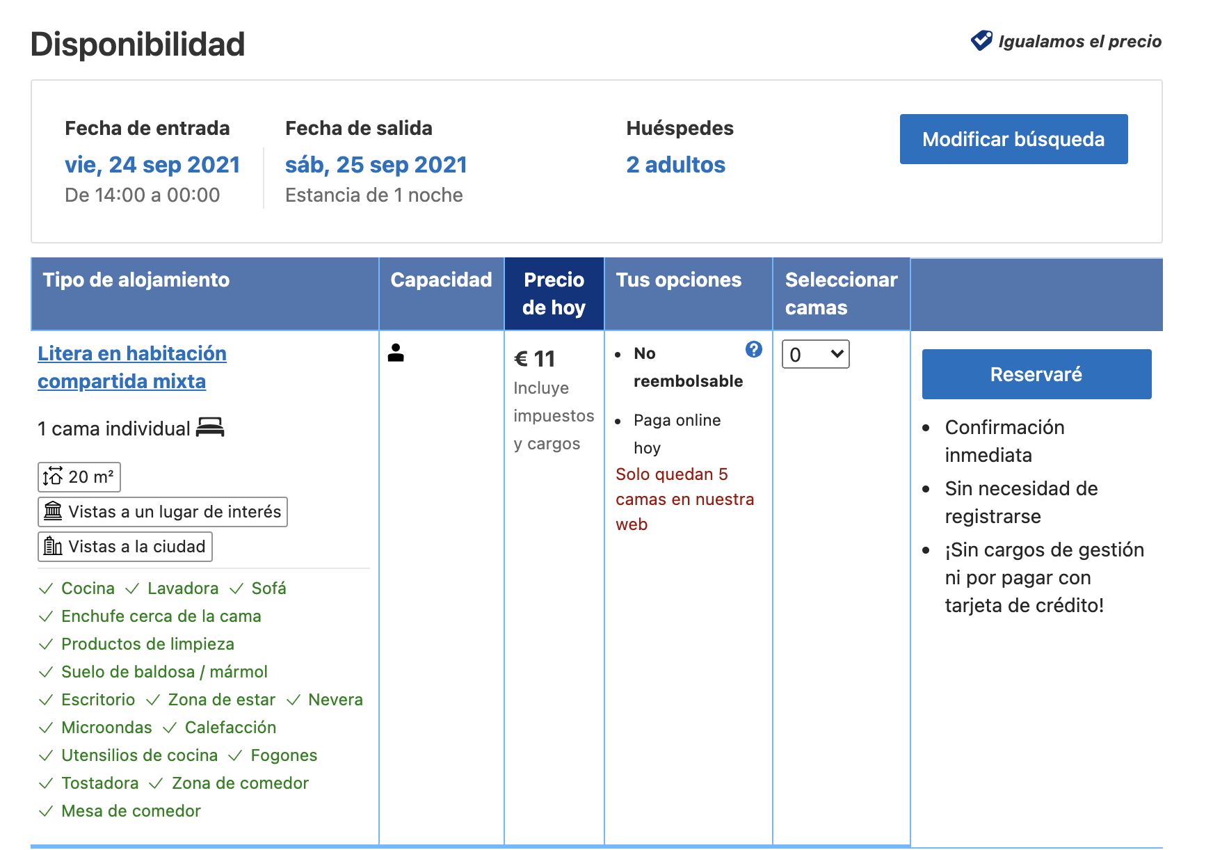 En Booking todavía se puede reservar por 11 euros a pesar de la plaga de chinches.
