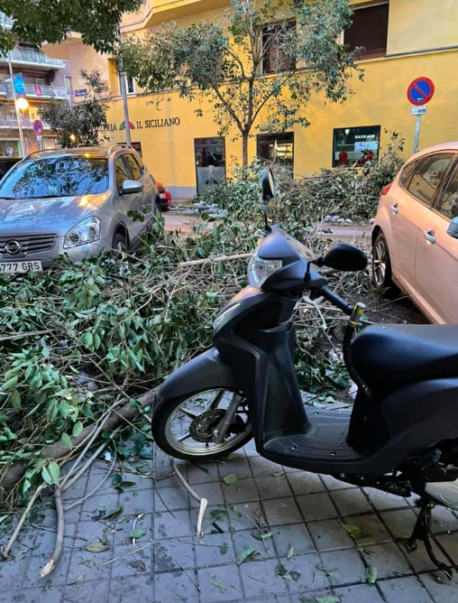 Los ramas caídos en la noche del viernes 8 de enero de 2021 siguen tiradas en las aceras doce días después. Estas ramas tamponan los imbornales que mañana miércoles deberían quedar libres para captar el agua que traerá la borrasca que lleva días anunciada.