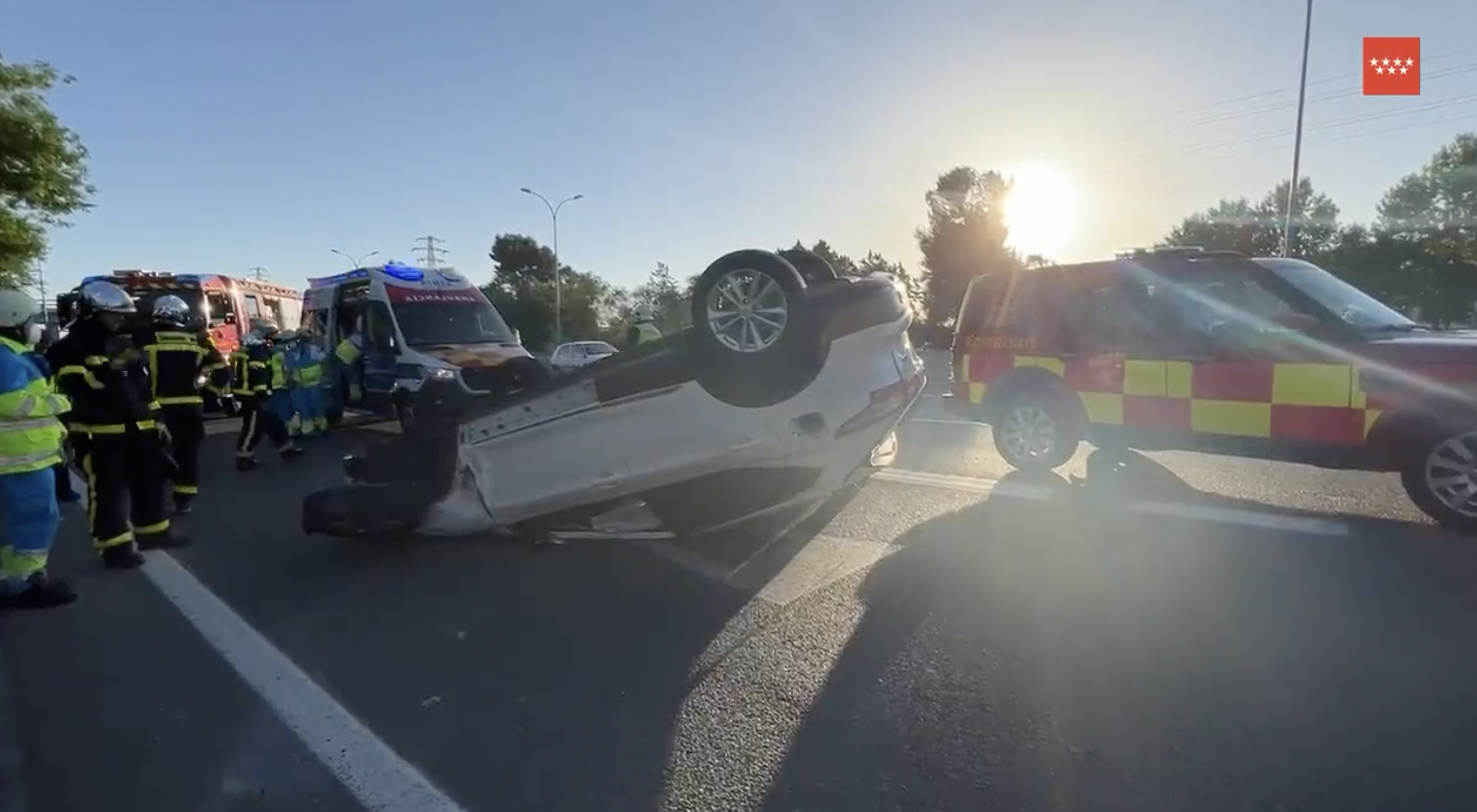 Este domingo 19 de junio de 2022 a primera hora ha tenido lugar un accidente con vuelco a la altura del kilómetro 20 de la A-4 sin heridos graves.