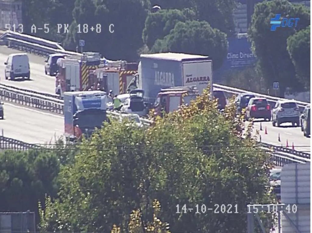 Este jueves 14 de octubre de 2021 pasadas las 15.00 horas ha tenido lugar un accidente con varios vehículos implicados a la altura del kilómetro 10 de la A-5, en Móstoles. Afortunadamente, sólo ha habido un herido leve, pero el atasco ha complicado la hora de la salida del trabajo de cientos de conductores.