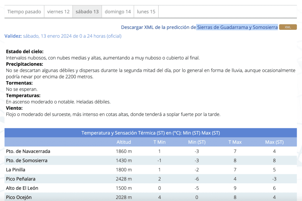 Qué tiempo hará en la Sierra de Madrid este sábado 13 de enero de 2024