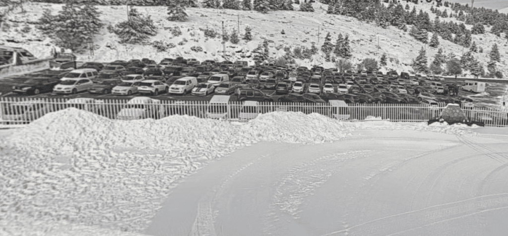 Este sábado 13 de enero de 2024 antes del amanecer los aparcamientos de montaña ya están llenos y siguen subiendo coches de madrileños que no han madrugado tanto y tienen que regresar a la capital porque no hay espacio físico en el que dejar su vehículo. El aparcamiento del Puerto de Cotos de la carretera SG-615 se encuentra completo desde antes de las 07.30 horas y el de Navacerrada de la M-601 se llenó a las 07.50 horas. El parking de Valdesquí también está completo. Y en las carreteras hay “atasco nivel rojo” informa la DGT, que ha tenido que cortar al tráfico la carretera M-601 a las 08.05 horas.