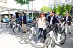 Botella presentó ‘BiciMad’ por todo lo alto como “una oportunidad para que el madrileño recupere la escala humana de la ciudad y la descubra a otro ritmo, desde otra perspectiva: a través de la mirada del ciclista”, dijo, antes de probarla junto al concejal presidente del disto de Salamanca, Fernando Martínez Vidal, y otros políticos del PP.