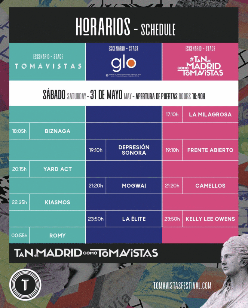 Este viernes 30 y sábado 31 de mayo de 2025 la Línea 3 de Metro de Madrid estará abierta hasta las tres de la madrugada para que los asistentes a los conciertos de Caribou y Romy puedan regresas a sus casas en transporte público al acabar las jornadas del fin de semana del Festival Tomavistas que se celebra en la Caja Mágica. Habrá trenes directos entre San Fermín-Orcasur y Sol con parada en Legazpi.