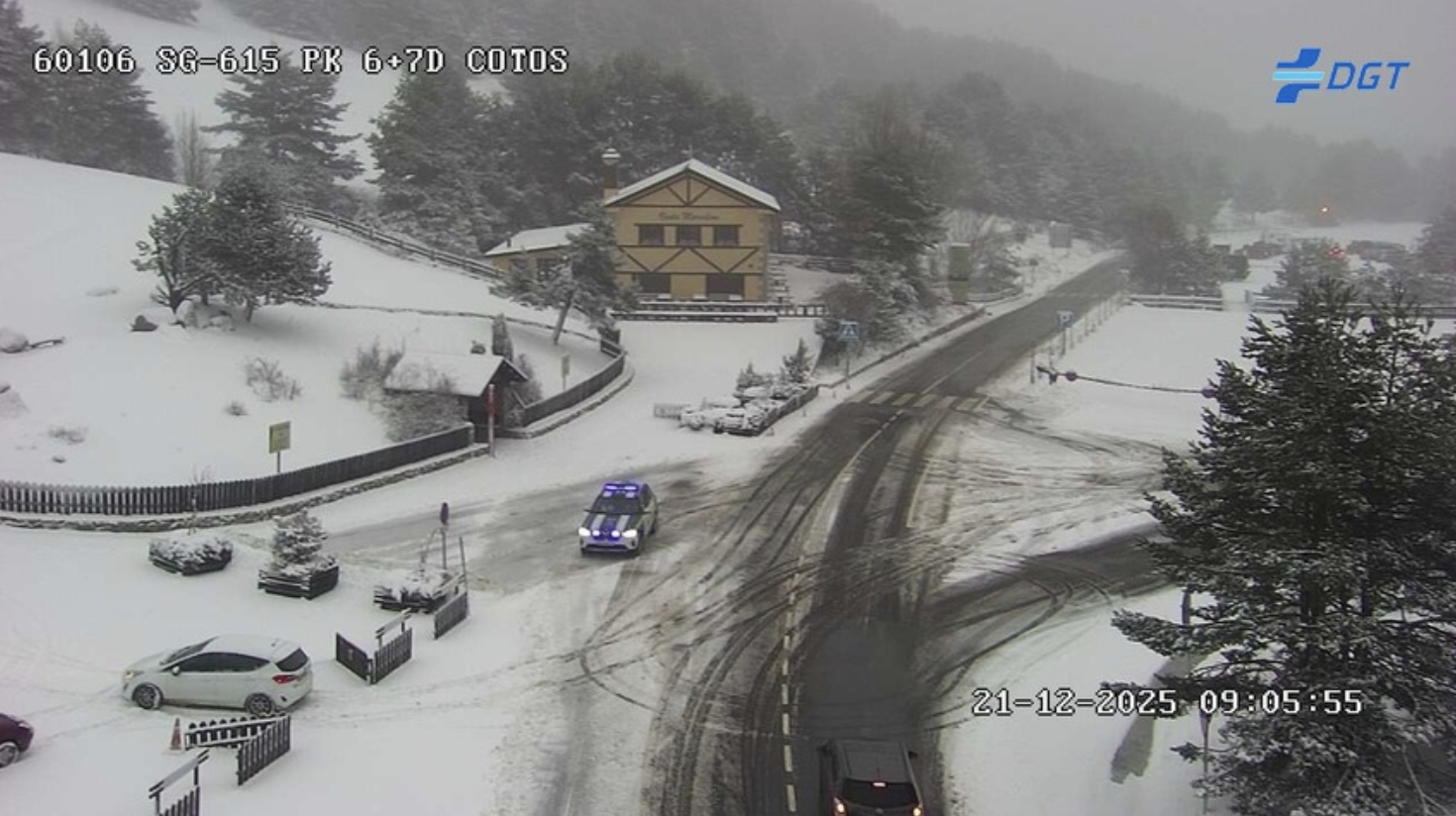 Este domingo 21 de diciembre de 2025 a primera hora de la mañana es peligroso subir en vehículo privado a la sierra madrileña. Una nevada de madrugada ha convertido las carreteras M-601 y M-604 (Navacerrada y Cotos) en impracticable sin cadenas.