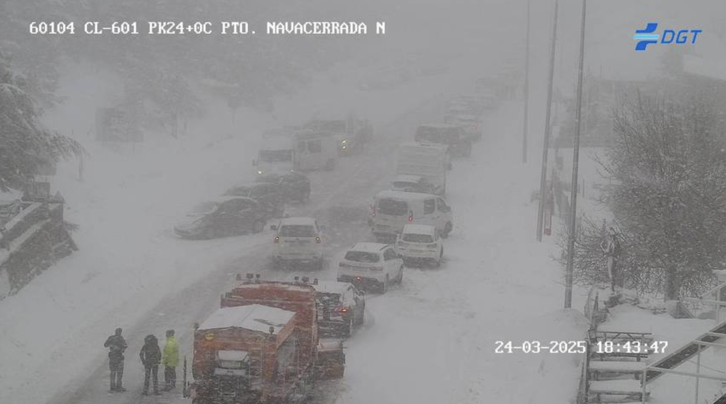 Una nueva nevada en la sierra de Madrid ha provocado el caos en las carreteras de montaña este lunes 24 de marzo de 2025. Se prevé una acumulación de cinco centímetros de nieve antes de las 22.00 horas.