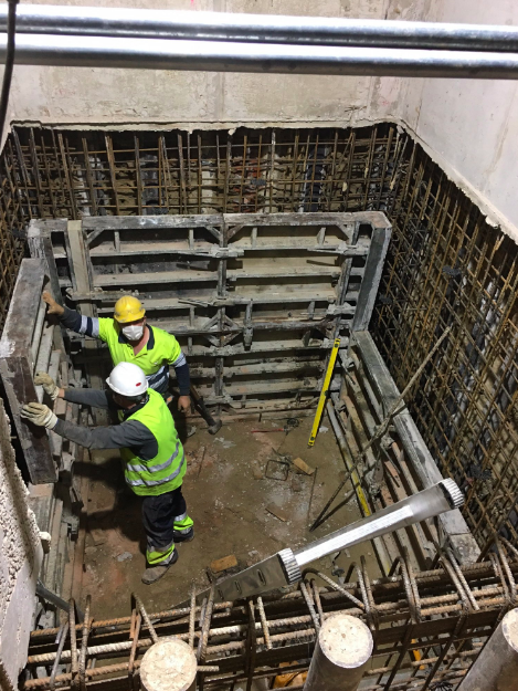 Para la instalación de los nuevos ascensores, que permitirán el acceso a la estación directamente desde la calle, se ha creado otro vestíbulo que conectará a través de un nuevo pasillo con los andenes de las líneas 2 y 9, en los que también se han instalado nuevos elevadores.