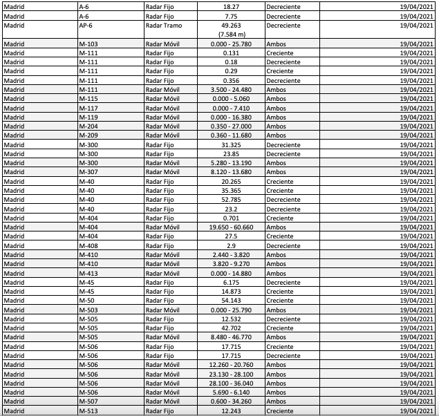 La DGT ha publicado la lista de los radares que más multan de España y en Madrid son estos: