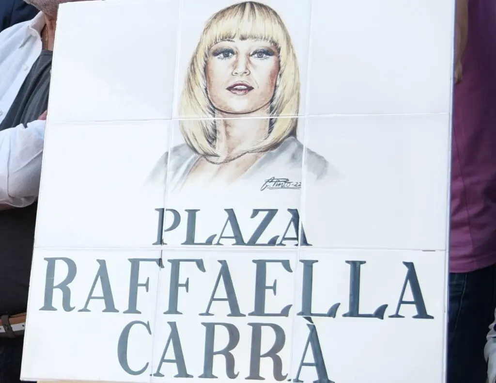 El 5 de julio de 2022, coincidiendo con el primer aniversario de la muerte de la artista Raffaella María Roberta Pelloni alias Raffaella Carrá, y en vísperas de las Fiestas del Orgullo, Madrid inauguró su nueva plaza de Raffaella Carrá ubicada en la calle de Fuencarral frente a los números 43 y 45, en una plaza que lleva su nombre. Una placa de nueve azulejos, obra del pintor Ángel García Pinto, así se lo recuerda al transeúnte.