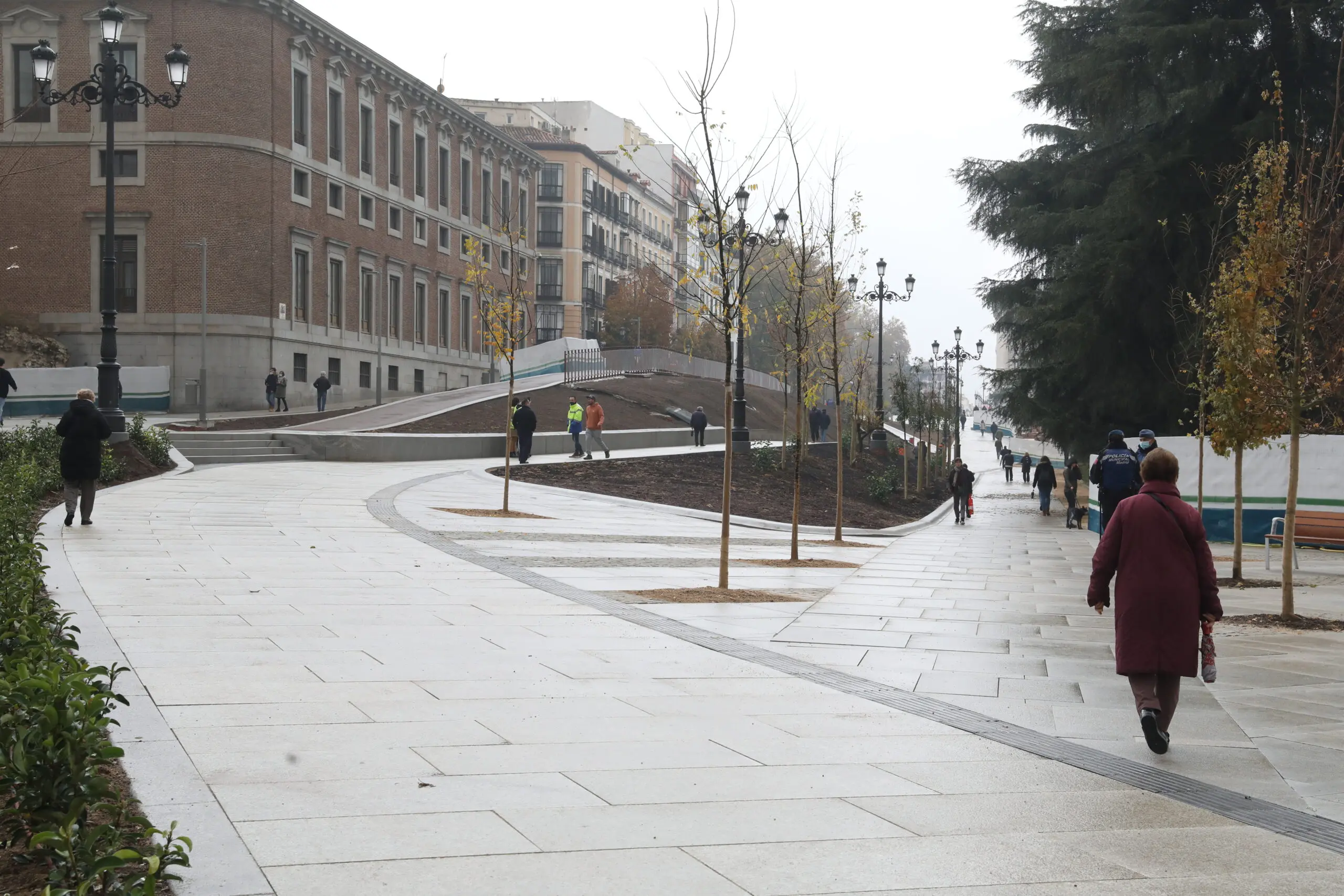 Uno de los objetivos fundamentales de la reforma ha sido la peatonalización del eje Bailén-Ferraz para materializar la conexión entre los valiosos espacios públicos de este entorno que hasta este momento habían estado segregados.