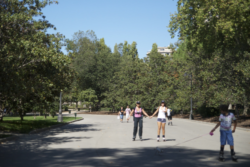 Pero no hay que salir de Madrid para ver ejemplos. Sin ir más lejos, un claro ejemplo se encuentra en el distrito de Retiro, dentro del Parque del Buen Retiro, y es el paseo de que da nombre al blog de tranporte de Zonaretiro.com: el Paseo de Coches. Este paseo, hoy vía de paso habitual de vecinos, patinadores y ciclistas, fue peatonalizado sin coste en 1983. Basta dar un paseo para comprobar que aún conserva su superficie de asfalto y marcas viales.