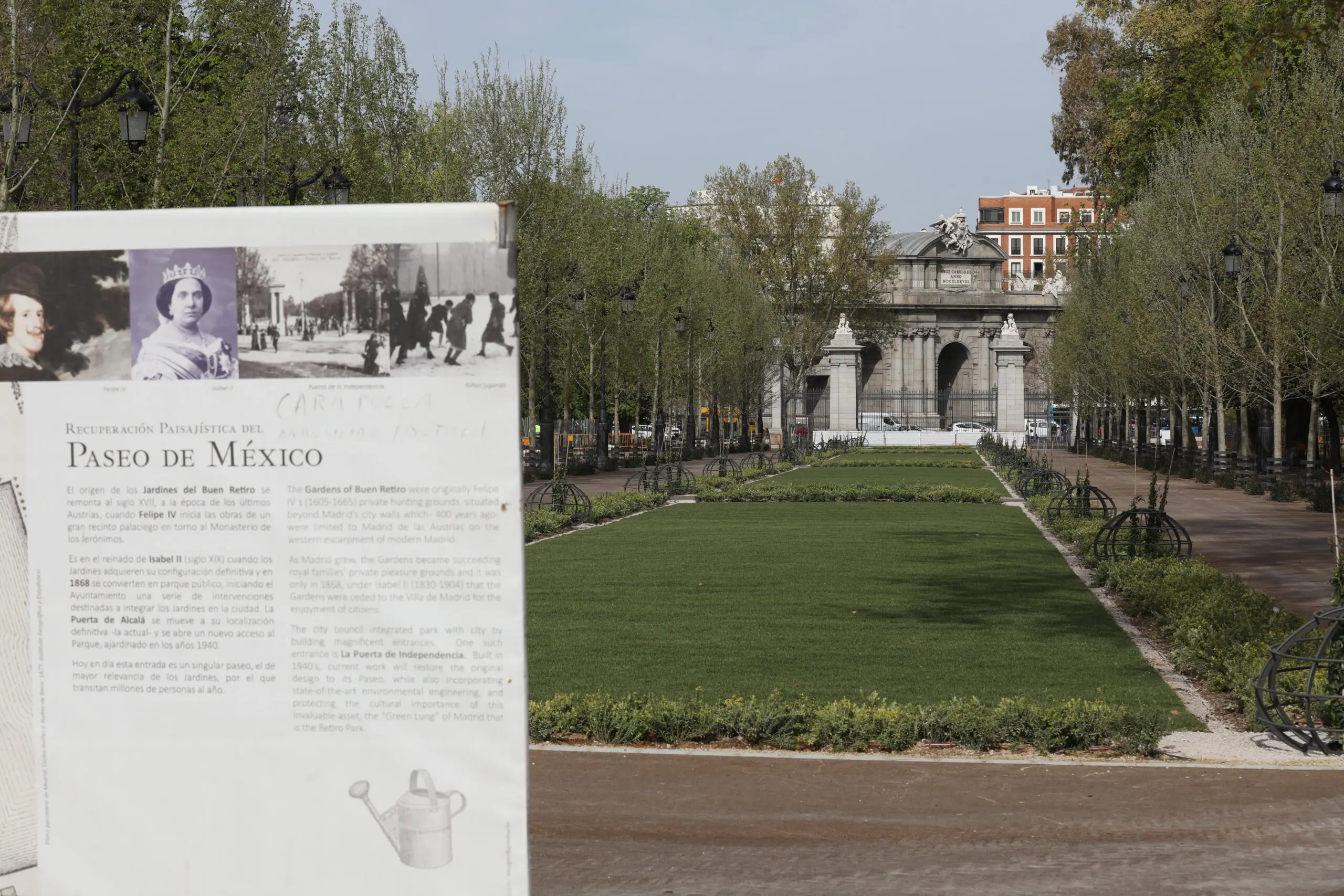 El miércoles 31 de marzo de 2021, un día antes de la reapertura total del Parque del Retiro, ha reabierto al público el Paseo de México del parque, ubicado junto a la entrada de la Puerta de Alcalá (Plaza de la Independencia), que llevaba en obras desde verano de 2019.
