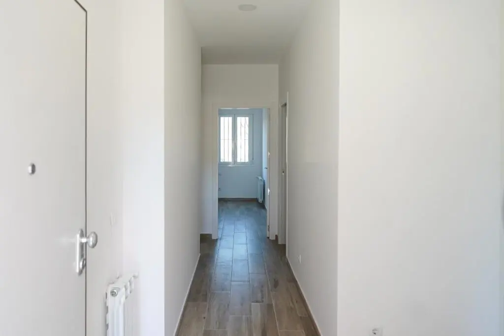 De momento sólo se ha habilitado uno, en Puente de Vallecas, pero serán 15 en total. La Comunidad de Madrid ha entregado este martes 31 de enero de 2023 en estas condiciones el primer local comercial público adaptado como vivienda social para personas con movilidad reducida. Tiene una superficie construida de casi 100 metros cuadrados y consta de salón comedor (con cables a la vista, la foto se ha visto de manera pública durante unos segundos), cocina (sin muebles, alacena, baldas, cajones ni puertas), tres habitaciones de las que no hay foto, dos baños de los que tampoco hay foto y un largo pasillo.